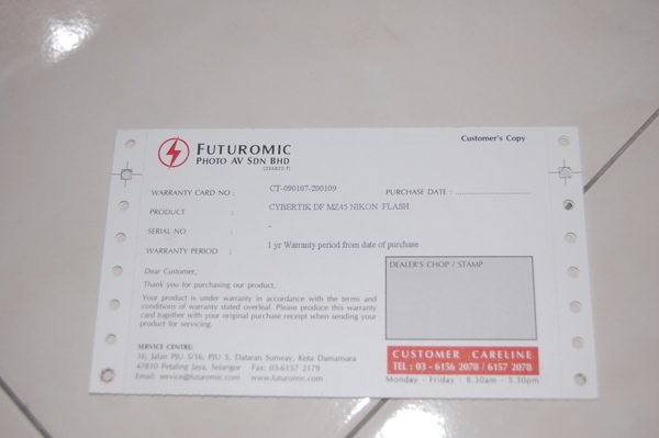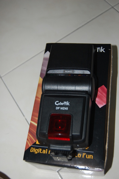 今天在Gigi生日这一天买了一个speedlight....Cybertik DF MZ45 Speedlight , 和Nikon Speedlight SB600的function差不多, 但是价钱就差几百块。